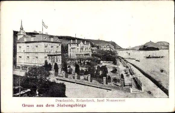 Ak Rolandseck Remagen am Rhein, Hotel Bellevue, Drachenfels, Insel Nonnenwerth