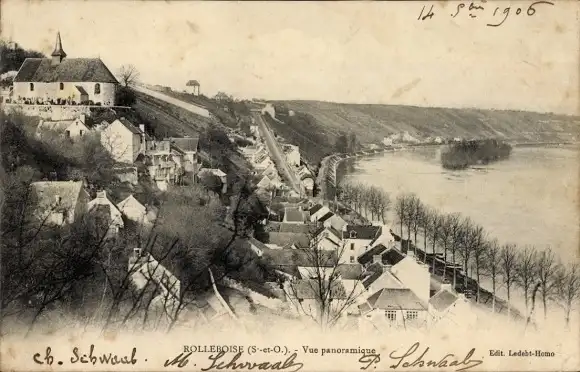 Ak Rolleboise Yvelines, Panorama, Häuser, Seine, Berg