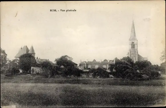 Ak Rom Deux Sèvres, Vue générale, Eglise
