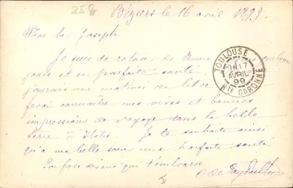 Zustand, siehe Scan, gelaufen, 1899 - ca 14 cm X 9 cm