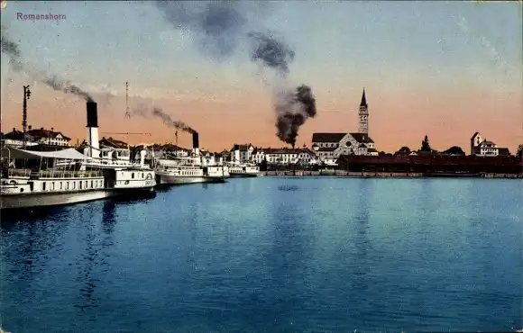 Ak Romanshorn Kanton Thurgau, Teilansicht, Dampfer