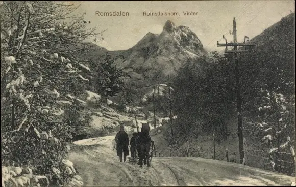 Ak Romsdalen Norwegen, Romsdalshorn, Vinter, Kutsche, Schnee