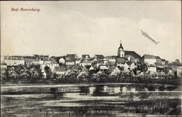 Ak Ronneburg in Thüringen, Baderteich, Zeppelin