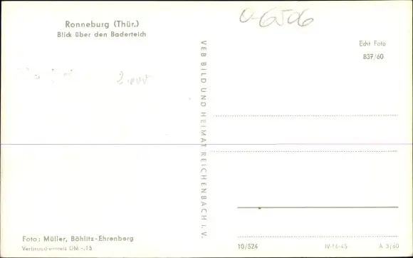 Ak Ronneburg in Thüringen, Blick über den Baderteich