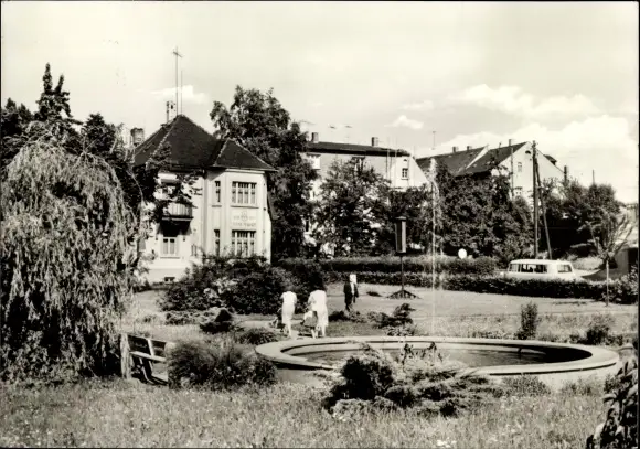 Ak Ronneburg in Thüringen, Karl Marx Platz, Springbrunnen