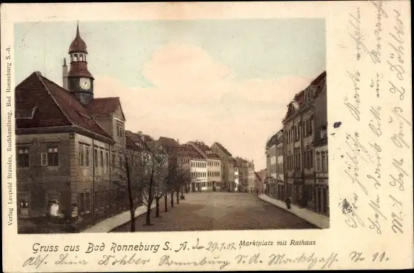 Ak Ronneburg in Thüringen, Marktplatz mit Rathaus