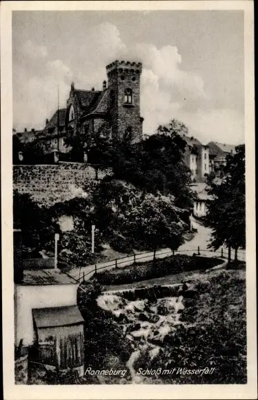 Ak Ronneburg in Thüringen, Schloss mit Wasserfall