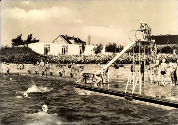 Ak Ronneburg in Thüringen, Sommerbad, Rutsche am Schwimmbecken