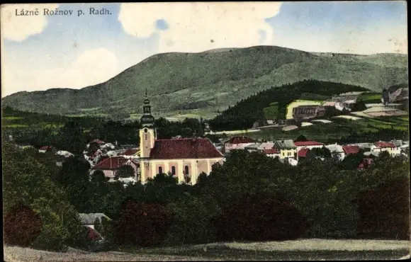 Ak Rožnov pod Radhoštěm Rosenau unter Radhost Region Zlin, Totalansicht, Kirche