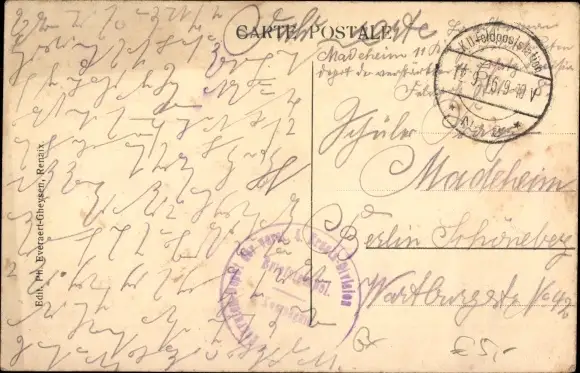 Zustand, siehe Scan, gelaufen, 1916 - ca 14 cm X 9 cm