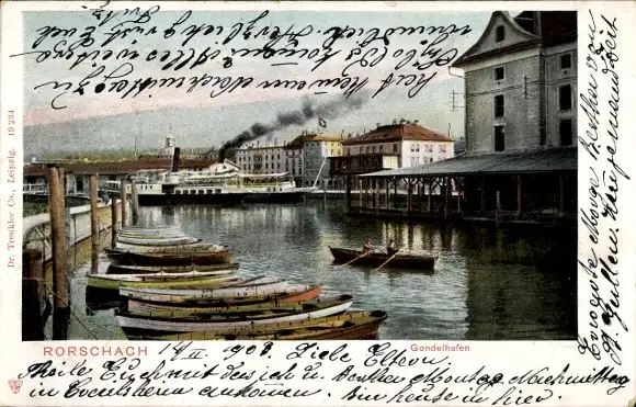 Ak Rorschach Kt Sankt Gallen, Gondelhafen, Ruderboote, Dampfer