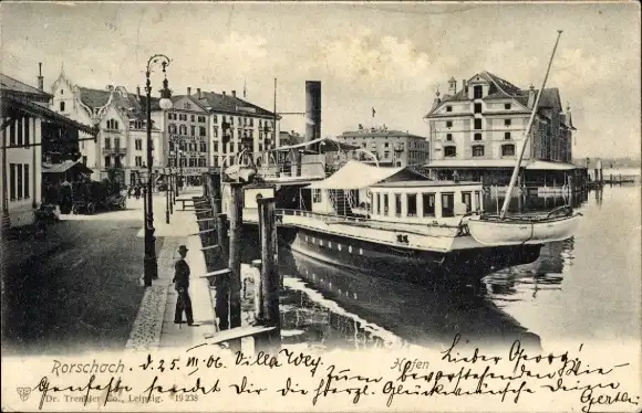 Ak Rorschach Kt. St. Gallen Schweiz, Hafen, Dampfer