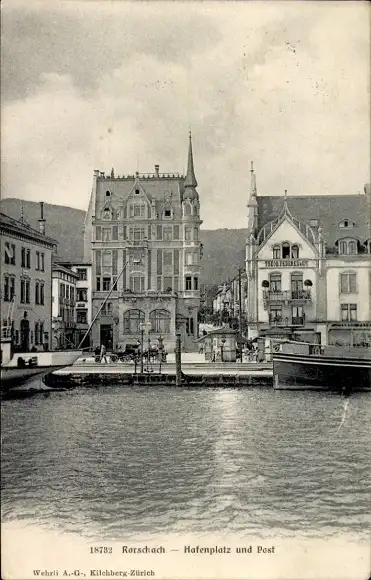 Ak Rorschach Kt. St. Gallen Schweiz, Hafenplatz, Post