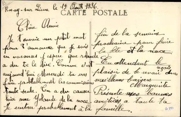 ungelaufen, Rückseite beschrieben, datiert 1936, sehr guter Zustand