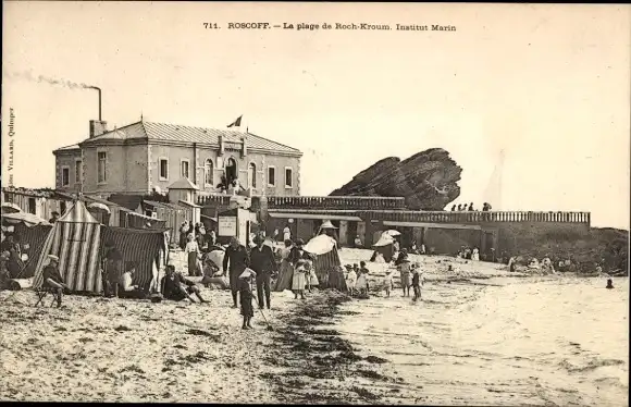 Ak Roscoff Finistère, Strand von Roch-Kroum, Institut Marin