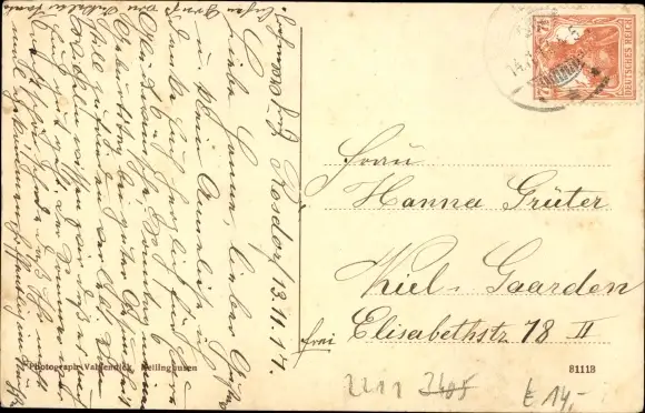 Zustand, siehe Scan, gelaufen, 1917 - ca 9 cm X 14 cm