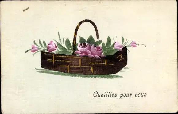 Ak Rosen im Korb, Blumenkorb, Kitsch