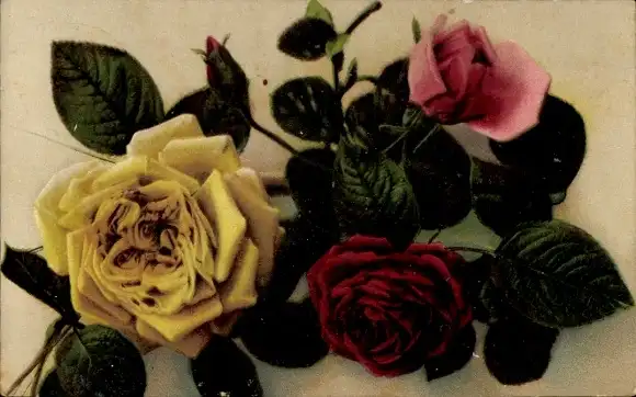 Ak Rosenblüten, Knospe, Blätter