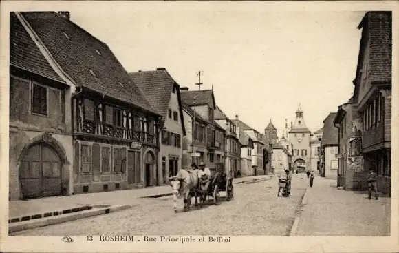 Ak Rosheim Elsass Bas Rhin, Rue principale et Beffroi