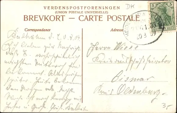 Zustand, siehe Scan, gelaufen, 1909 - ca 14 cm X 9 cm