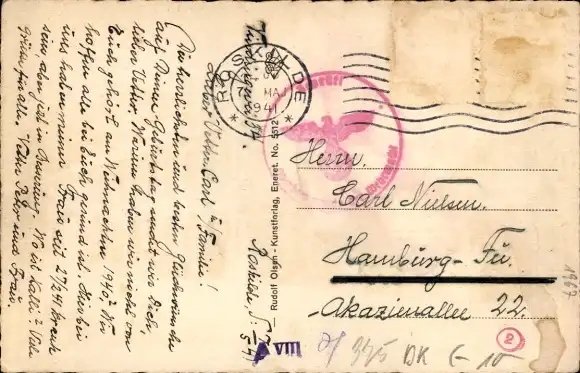 Zustand, siehe Scan, gelaufen, 1941 - ca 14 cm X 9 cm