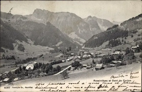 Ak Rossinière Kanton Waadt, Rossinière et Dent de Corjon