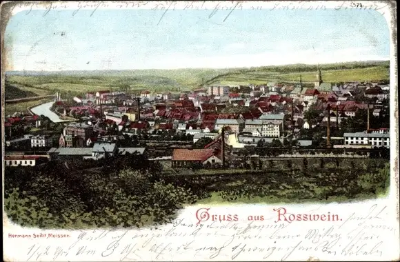 Ak Roßwein in Sachsen, Panorama vom Ort