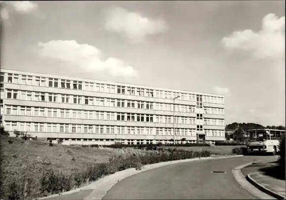 Ak Roßwein in Sachsen, Paul-Rockstroh-Oberschule, Bus