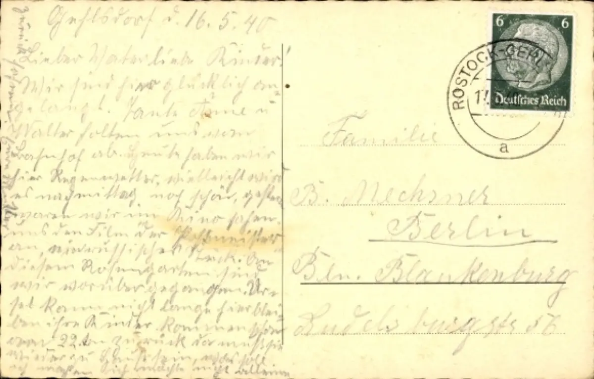 Zustand, siehe Scan, gelaufen, 1940 - ca 14 cm X 9 cm