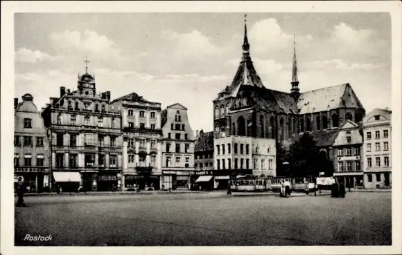 Ak Rostock, Neuer Markt, Ratsapotheke, Geschäfte, Kirche
