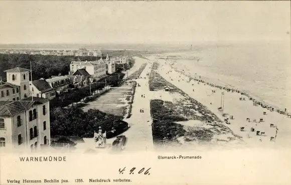 Ak Rostock Warnemünde, Bismarck-Promenade, Strand
