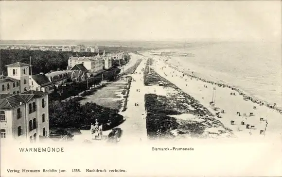 Ak Rostock Warnemünde, Bismarck-Promenade, Strand