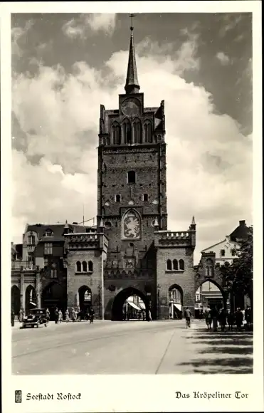 Ak Rostock in Mecklenburg, Kröpeliner Tor, Turm
