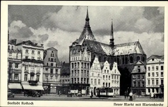 Ak Rostock in Mecklenburg, Neuer Markt mit Marienkirche