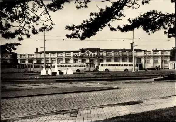 Ak Rostock in Mecklenburg Vorpommern, Hauptbahnhof, Omnibusse, Straßenseite