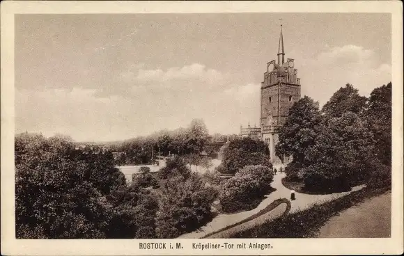 Ak Rostock in Mecklenburg Vorpommern, Kröpeliner Tor mit Anlagen