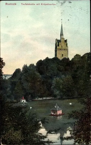 Ak Rostock in Mecklenburg Vorpommern, Teufelskuhle mit Kröpelinertor