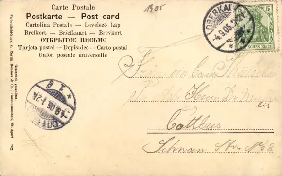 Zustand siehe Scan, 1905, gelaufen - ca 9 cm X 14 cm