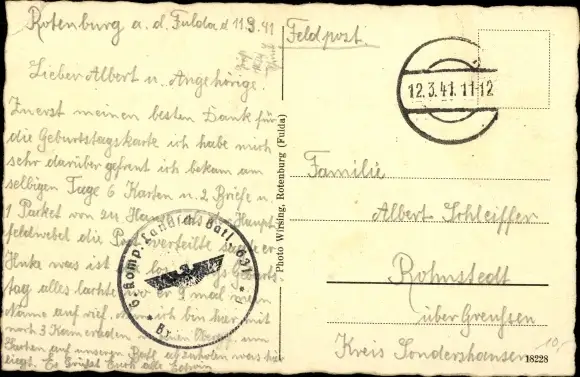 gelaufen 1941, Eckknick rechts unten, sonst guter Zustand