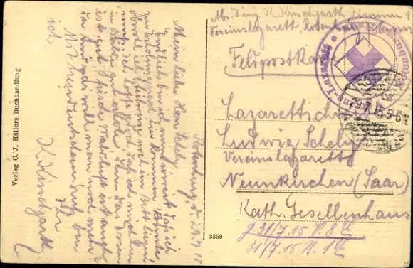 Zustand, siehe Scan, gelaufen, 1915 - ca 14 cm X 9 cm