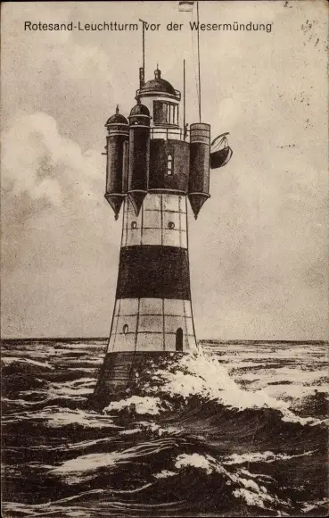 Ak Rotesand Leuchtturm vor der Wesermündung