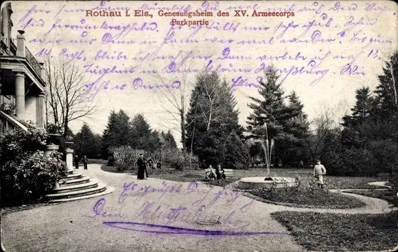 Ak Rothau Elsass Bas Rhin, Genesungsheim des XV. Armeecorps, Park