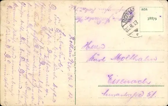Zustand, siehe Scan, gelaufen, 1913 - ca 14 cm X 9 cm