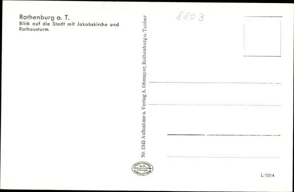 Ak Rothenburg ob der Tauber Mittelfranken, Blick auf die Stadt mit Jakobskirche und Rathausturm