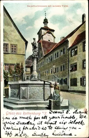 Ak Rothenburg ob der Tauber Mittelfranken, Kapellenbrunnen mit weißen Turm