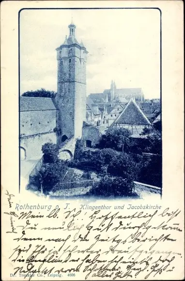 Ak Rothenburg ob der Tauber Mittelfranken, Klingentor und Jacobskirche