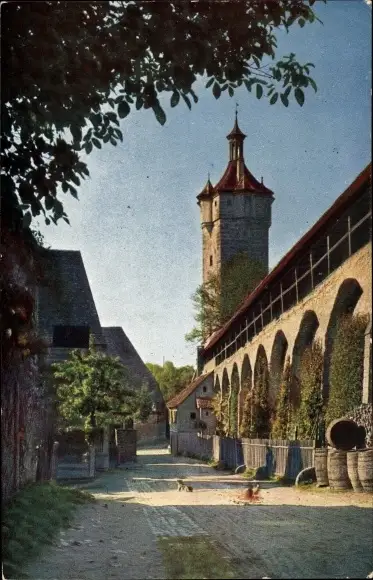 Ak Rothenburg ob der Tauber Mittelfranken, Klingentorturm nebst Stadtmauer