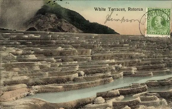 Ak Rotorua Neuseeland, Weiße Terrassen