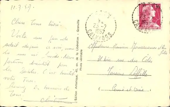 Zustand, siehe Scan, gelaufen, 1957 - ca 5 cm X 3 cm