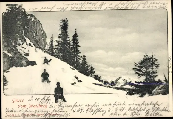 Ak Rottach Egern in Oberbayern, Wallberg, Rodelbahn, Menschen mit Schlitten